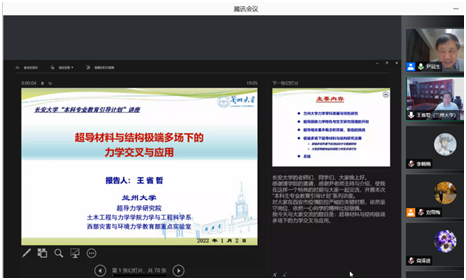 2022年1月2日下午19:00,兰州大学王省哲教授通过腾讯会议为williamhill官网作了题为“超导材料与结构极端多场下的力学交叉与应用”的线上主题报告。本次报告会由尹冠生教授主持,williamhill体育在线登录及其他学院部分教师、工程力学系研究生和本科生参加了此次报告会。