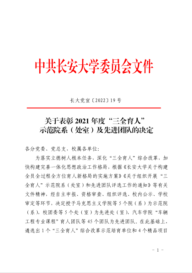近日,我校发布《关于表彰2021年度“三全育人”示范院系(处室)及先进团队的决定》(长大党宣〔2022〕19号),williamhill体育在线登录入选“三全育人”示范院系,是全校仅有的5个学院之一,williamhill官网“与理同行”学生工作团队入选“管理育人”先进团队。