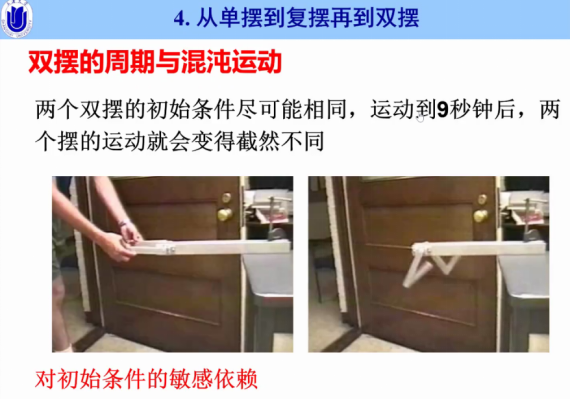 会议期间,陈立群教授首先以单摆运动的研究历史为线,向与会师生介绍周期性运动和混沌现象。单摆是一种理想化的物理模型,由一根不计质量的细线和质量集中在质心的重物组成。伽利略首先进行单摆运动的研究,发现了单摆的等时性,并给出了单摆周期的不完全公式;后来惠更斯进一步进行了单摆的研究,给出了单摆的周期的正确公式,发现单摆在大幅运动下不具有等时性,并以工程师的视角提出了转动惯量和复摆的概念;最后牛顿提出了牛顿运动定理,揭示了摆在阻尼介质中的运动机理并给出了大幅运动等时性不成立的原因。之后,陈立群教授介绍了双摆的概念,并以其发生的混沌运动为例,阐明了混沌运动的初态敏感性与不可预测性。最后,陈立群教授分享了从混沌现象中领悟的人生哲理,当难以看清事物和做出决定时,最稳妥的做法是选择荣誉和正义,既然无法确定捷径,那干脆走正道。