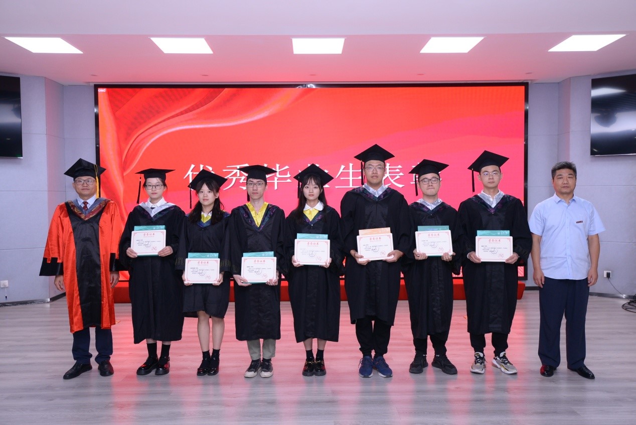 副院长商泽进宣读了关于表彰2022届优秀毕业生、优秀毕业生干部的决定。院党委书记闫永刚、院长宋学力为2022届优秀毕业生颁发荣誉证书和毕业纪念品并合影留念。