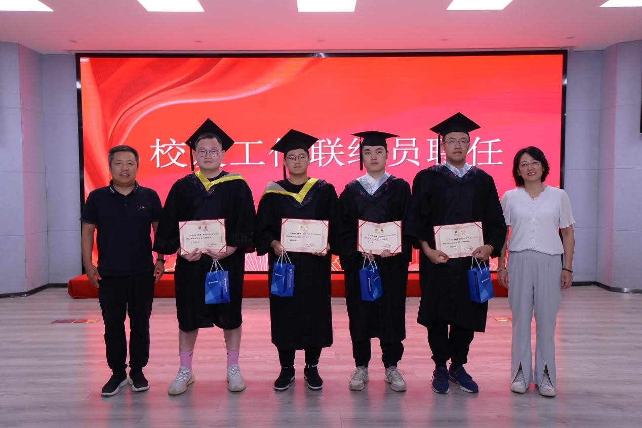 副院长徐春龙宣读了2022届校友联络员聘用决定,副院长马建敏颁发校友联络员聘书和纪念品并合影留念。