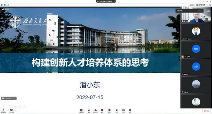 应williamhill体育在线登录williamhill体育在线登录邀请,2022年7月15日上午西南交通大学数学学院教学副院长潘小东为williamhill官网教师做了题为“构建创新人才培养体系的思考”的报告。报告会由理学院副院长商泽进主持,williamhill体育在线登录和西南交通大学数学学院部分院领导、系主任、专业责任教授、教师等近30余人参加了报告会。