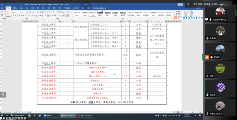 商泽进首先介绍了我校编制2022版完全学分制培养方案的精神和要求,强调编制本次培养方案要结合专业特色细化培养目标和毕业要求,全面梳理专业核心课程和特色课程。接着石晶详细介绍了我校2022版工程力学专业培养方案的初稿以及编制过程中的一些问题。