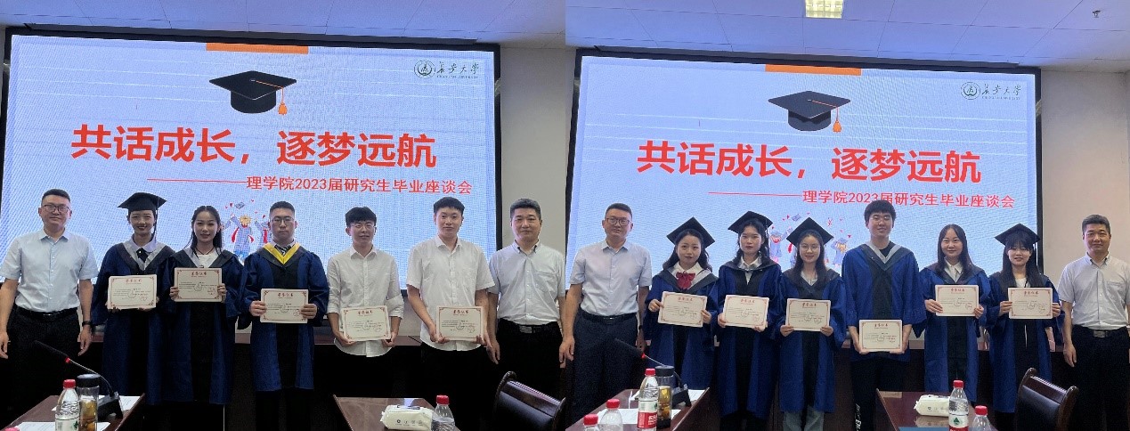 座谈会上,毕业研究生代表分享了各自在校期间的成长经历和学习感悟,表达了对学校、学院和老师们的深情感恩与不舍之情,表示会带着在学校的美好记忆,带着老师和学弟学妹们的祝福,在新的岗位上努力奋斗。参会老师们对毕业生顺利完成学业表示热烈祝贺,对毕业生即将走上社会或继续深造致以深深地祝福,勉励同学们将个人发展融入祖国建设,在接续奋斗中书写卓越篇章,并欢迎同学们常回母校看看。