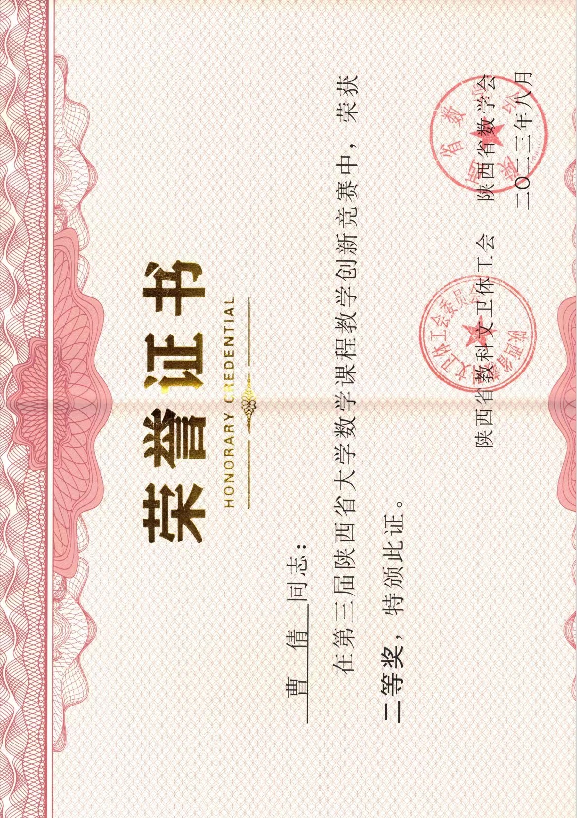 8月19日,第三届陕西省大学数学课程教学创新竞赛活动颁奖仪式暨第四届陕西高校大学数学课程建设与教学改革研讨会在榆林学院举行。竞赛分为材料评审和视频评审两个阶段,经过激烈的角逐,williamhill官网数学与统计教学发展中心选派的三位教师均获奖,其中李玉超老师获得一等奖,曹倩、刘佳两位老师分别获得二等奖。
