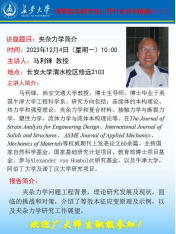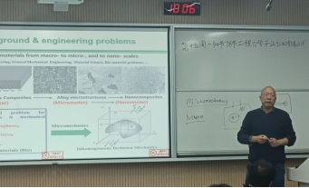 12月4日上午,西安交通大学马利锋教授以“夹杂力学”为主题,主要介绍了夹杂力学发展的历程、等效本征序列原理以及正在进行的相关工作等多个方面。马利锋教授结合自身科研背景,介绍夹杂力学的背景、发展以及现状,结合自身留学经历,介绍夹杂力学的挑战、策略以及应变原理,讲解了力学知识和理论在夹杂力学中的运用。本次报告由张博老师主持,报告结束后,马利锋教授结合自己的海外求学经历和工作经历,鼓励学生树立目标,扎实力学基础,才能在未来的学习和科研工作中走得更远。