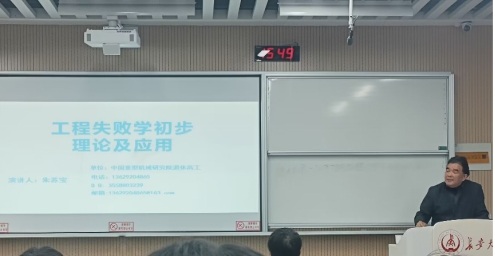 随后,中国重型机械研究院高级工程师朱苏宝教授做了有关“工程失败学”的报告,此次报告主要从工程失败学的分类、国内外成功案例对工程失败学问题的思考以及对国内外工程失败学案例原因的剖析等三个方面进行讲解。结合多个工程失败的实例使学生认识到工程失败学的必要性以及如何在具体的工作环境中更好的规避失败。本次报告由工程力学系张博老师主持,报告结束后,同学们纷纷表示本次报告让自己拓宽了眼界,受益匪浅。