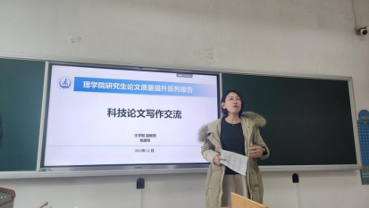 12月20日下午,williamhill体育在线登录顺利举办了“研究生论文质量提升系列报告(三)”的分享交流讲座。williamhill官网王学智副教授应邀作了题为“科技论文写作交流”的报告。会议由学院副院长马建敏主持,40余名师生参加了本次报告会。