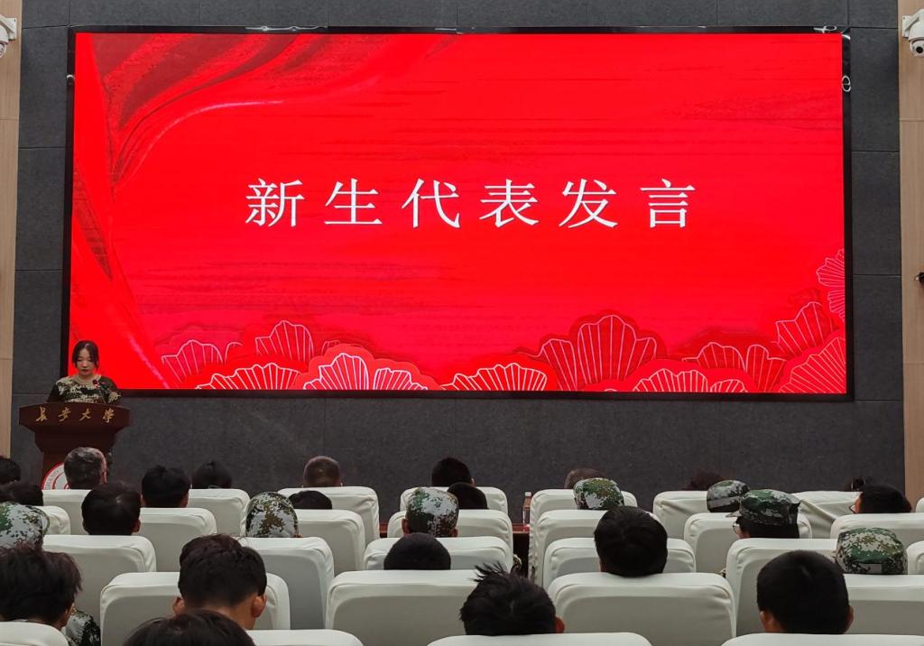 2024级应用物理专业张佳洁代表全体新生对领导、老师和学长学姐们军训期间的悉心关怀表示衷心感谢。她简要介绍了大学期间的目标与规划,表达了对大学生活的强烈期待。她呼吁同学们遵纪守法、尊师重道,迎难而上,不惧挑战,在学习与实践中不断磨砺自己,努力成为新时代的优秀大学生。