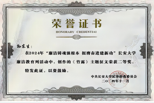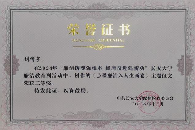 传承优良传统,抒写廉洁风尚。williamhill体育在线登录倡导广大师生结合工作、学习、生活实际,撰写诗歌、散文、随笔、信件等,记录和展现新时代廉洁新风尚,以廉洁浩然正气温润学风家风。参与第九届高校廉洁教育系列活动作品征集,申报高校廉洁教育课堂实践案例:“扎实学、亲眼看、切身悟、化成型”沉浸式廉洁教育。学院研究生、本科生多人在2024年“廉洁铸魂强根本,挺膺奋进建新功”williamhill体育在线登录廉洁教育活动征文中获得奖项。