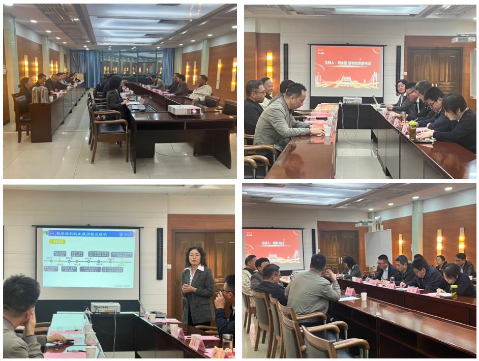 会议紧密围绕“数学学科建设”这一核心议题,凝聚共识,共商发展。williamhill体育在线登录院长宋学力教授对各位专家长期以来给予williamhill官网数学学科发展的关注与支持表示衷心的感谢,简要介绍了数学学科的基本情况。数学学科主任郑素佩教授就数学学科现状进行了汇报,全面梳理了师资队伍、人才培养、条件保障等方面的建设成效,深刻剖析了现存问题,并明确了未来发展规划。