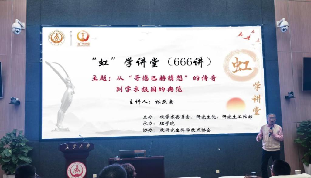 本次报告主要围绕“哥德巴赫猜想”起源、陈景润科研历程、陈氏定理价值、学术报国精神四个方面展开。首先,林亚南教授从素数概念引入,介绍1742年哥德巴赫猜想的提出,及希尔伯特将其纳入“23个著名问题”的背景,让听众明晰该猜想的起源与重要性;随后,他讲述陈景润的传奇人生,从少年求学经历,到厦门大学刻苦钻研,再到中科院证明“1+2”(陈氏定理)的艰辛,既展现其对数学的痴迷,也指出该成果获国际数学界“光辉顶点”的评价,以及陈景润两次获国际数学家大会45分钟报告邀请、获国家自然科学一等奖等荣誉;最后,林教授聚焦学术报国精神,以陈景润在艰苦环境中坚守科研、助力国家数学事业为例,号召师生传承这份精神,以严谨态度和不懈追求投身学术研究。