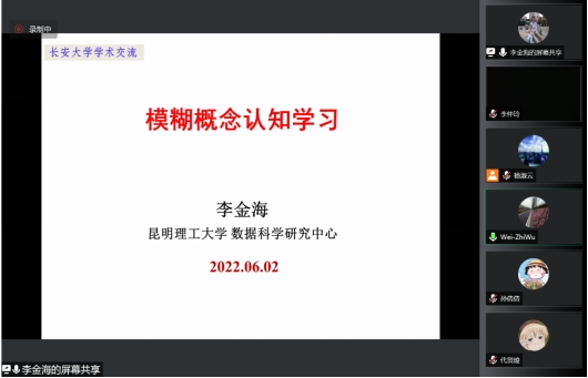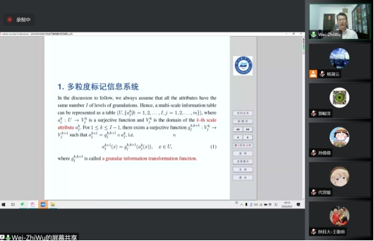 应williamhill体育在线登录邀请,6月2日下午,浙江海洋大学吴伟志教授、河北师范大学米据生教授和昆明理工大学李金海教授通过腾讯会议分别做了题为:“多尺度数据的知识获取”、“粗糙近似空间与信任结构”和“模糊概念认知学习”的学术报告。报告由williamhill体育在线登录副院长马建敏教授主持。统计学科部分教师、研究生以及来自西安交通大学、西安电子科技大学、空军工程大学、河北师范大学、陕西科技大学、西安石油大学等多所高校的70余名师生参加了此次报告会。