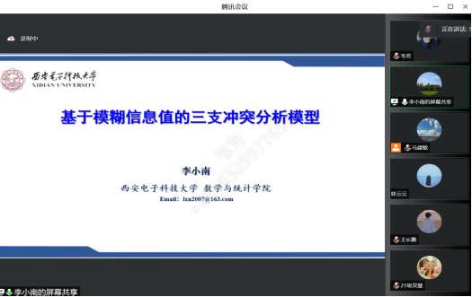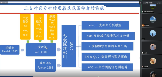 李小南通过三支冲突分析的近期发展,介绍了我国学者在三支冲突分析方面所做的贡献及国际影响力,提出科研自信、文化自信!并通过自己的科研感悟探讨了科研就要坚持“道虽远,不行不至,事虽难,不为不成”!