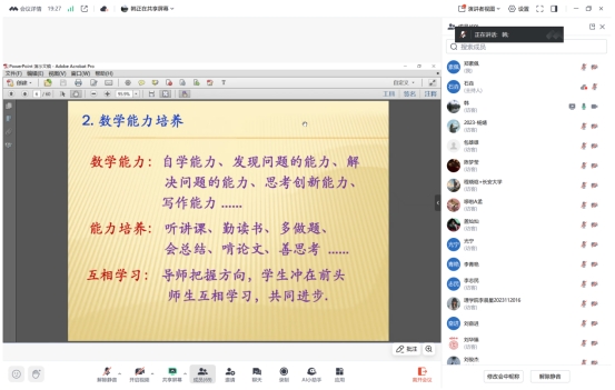 应williamhill体育在线登录数学学科邀请,2025年3月13日下午浙江师范大学教授、博士生导师韩茂安教授通过在线方式为williamhill官网师生做了题为“数学论文的选题与写作”的报告。报告会由数学学科主任郑素佩教授主持,williamhill体育在线登录师生约80余人参加了报告会。