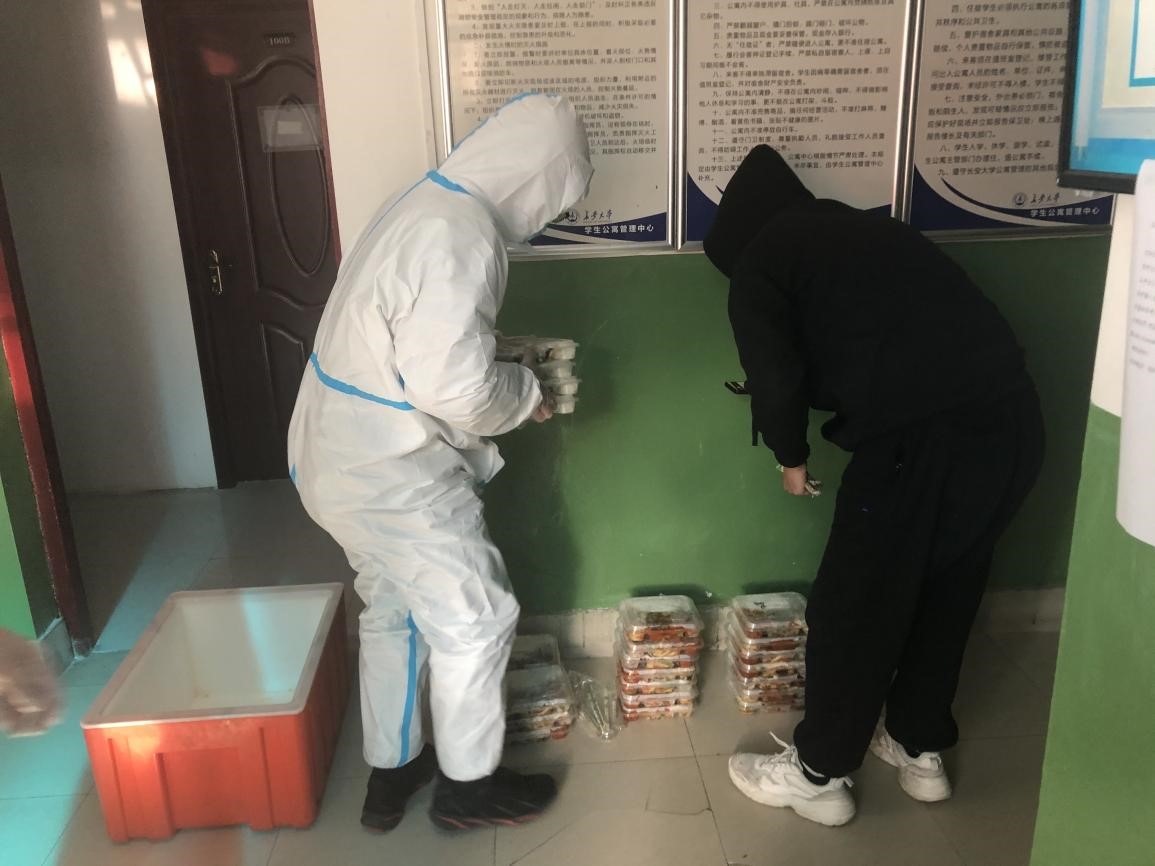 志愿者全程做好防护措施,在送隔离餐的同时,还兼顾了分餐、防疫物资领取和发放、收集学生意见并反馈等工作。此外,面对送餐数多、口味各异等情况,志愿者们互相配合、积极协调,尽量满足大家的需求,高效、有序地送好每一餐。