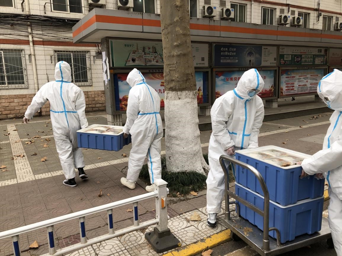 志愿者搬送饭菜