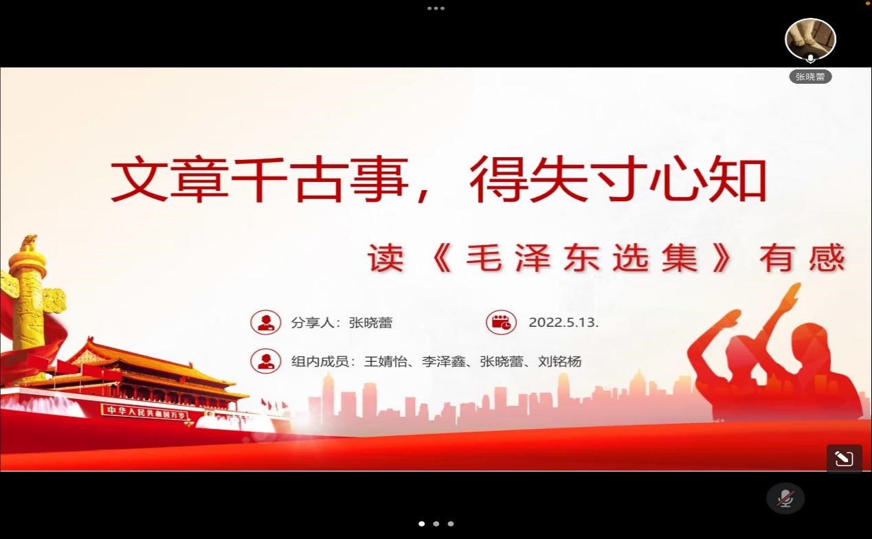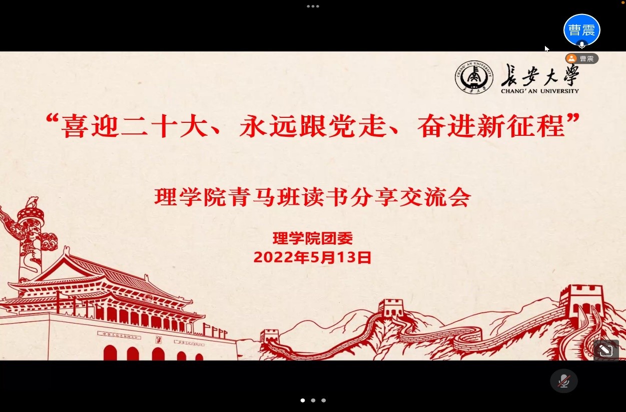 为迎接党的二十大胜利召开,不断提升青年学生理论素养和文化内涵。5月13日中午,williamhill体育在线登录青马班通过腾讯会议召开了读书分享交流会。学院团委书记刘延海、团委副书记朱悦以及青马班全体成员参加本次活动,本次活动由曹震主持。
