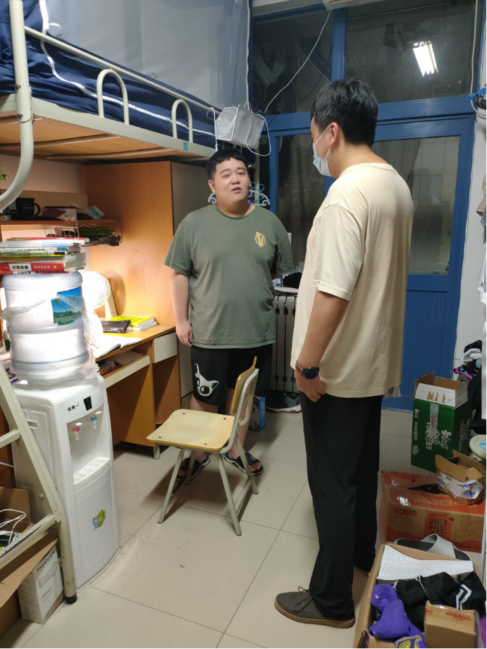 7月11日以来,研究生导师邓庆田、张太雷、肖玉柱、郑素佩、侯兆阳、刘奋进、吴田军等实地走访了学生宿舍。研究生导师们叮嘱留校学生要遵守疫情防控各项政策、注意宿舍安全、保持宿舍卫生。研究生导师们亲切询问了留校学生的假期规划和科研进度,并对对留校学生在实验、论文等方面的困惑进行了指导。