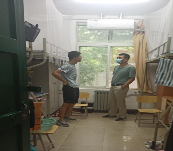暑假以来,辅导员刘延海、杨雪菲对学生宿舍进行了实地走访。详细询问了留校学生的学习生活状况。提醒同学们遵守学校各项管理规定,时刻注意安全,做好防暑降温。希望留校学生互帮互助,营造良好的学习氛围。