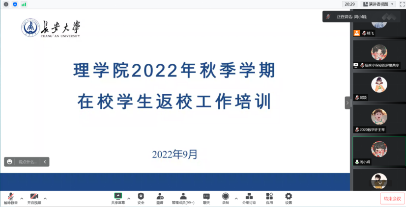 为确保2022年秋季学期学生返校工作有序开展,切实维护师生健康安全,根据上级部门及属地有关要求,结合学院工作实际,2022年9月7日至8日,williamhill体育在线登录各年级通过腾讯会议,分别召开2022年秋季学期学生返校培训会议,williamhill体育在线登录党委副书记屈颖,辅导员刘延海、杨雪菲、周小娟,全体本科生、研究生以及部分学生家长参加了会议。