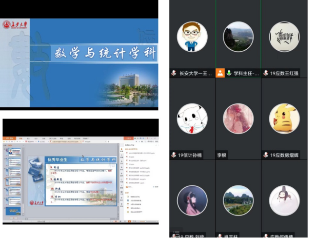 为使学生全面了解数学学科、认清考研与就业形式、鼓舞学生士气、增强专业自信,9月25日晚,数学学科以腾讯会议方式召开了“助你前行”就业与考研动员会。学科主任张太雷老师,数学与应用数学系系主任肖玉柱老师、统计系系主任任丽梅老师、信息与计算科学系系主任郑素佩老师、数学建模中心主任刘奋进老师、2019级数学两个专业全体学生及2020级部分同学参加了会议。会议由2019级数学类思政班主任王成主持。