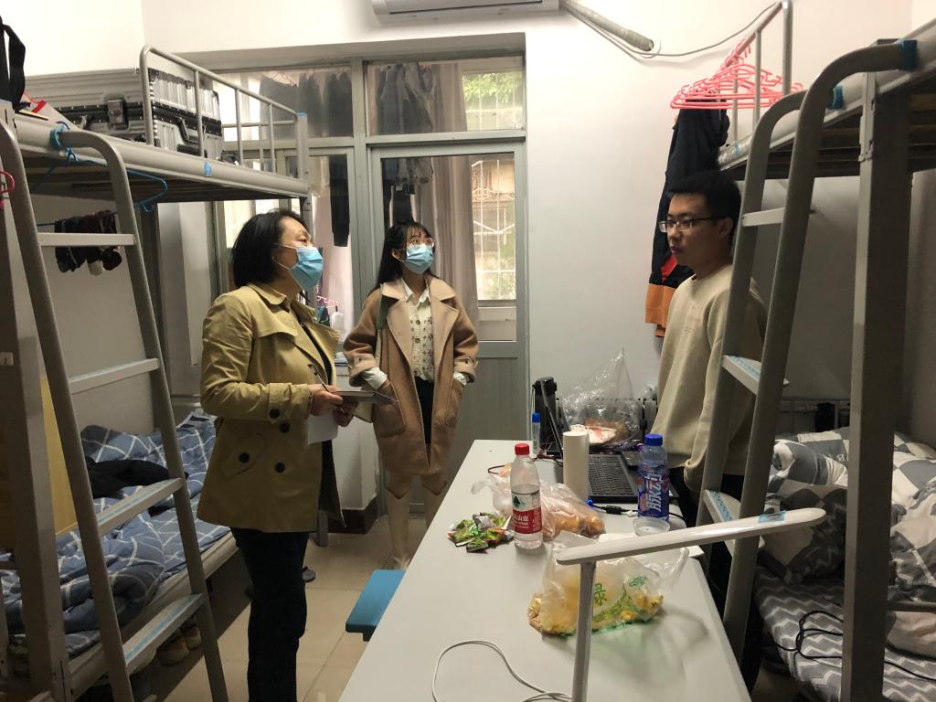 屈颖和周小娟认真检查宿舍卫生情况,重点关注是否存在安全隐患,叮嘱学生务必做好房间卫生治理、及时开窗通风、不要在宿舍抽烟等,对存在安全隐患的宿舍提出整改要求,把责任落实到个人,保证整改措施切实可行高效。