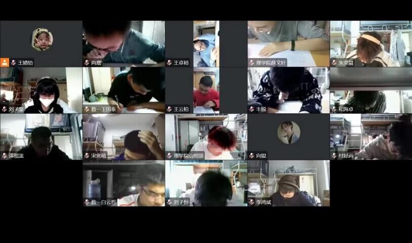 本次考试按班级共设置四个线上考场,以线上监考和宿舍巡考的方式进行监考。数学类专业考试科目为英语、高等代数和数学分析;工程力学专业考试科目为英语和高等数学。新生们均能按照要求认真对待、自觉遵守考试纪律、规范答题,线上考场秩序井然。