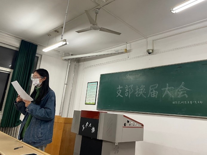 会议第一项分别由原支部书记翟梦情、王鹏博分别做工作报告,总结了支部一年来的活动开展情况和支部建设情况。会议第二项第一、第二党支部分别选举新一任委员会。根据选举办法和投票结果,研究生第一党支部选举刘宗萱同志担任支部书记,陈梦莹同志担任组织委员,周余琳同志担任宣传委员;研究生第二党支部选举胡雪铌同志担任支部书记,姚嘉晖同志担任组织委员,邹俊岭同志担任宣传委员。