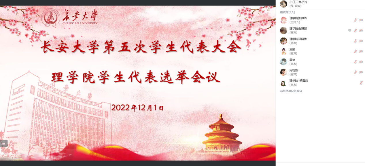 12月1日,williamhill体育在线登录第五次学生代表大会williamhill体育在线登录学生代表选举会议顺利召开。williamhill体育在线登录党委副书记屈颖、团委书记杨雪菲以及108名学生代表参加会议,本次会议在线上召开,由学生会执行主席郑茄华主持。
