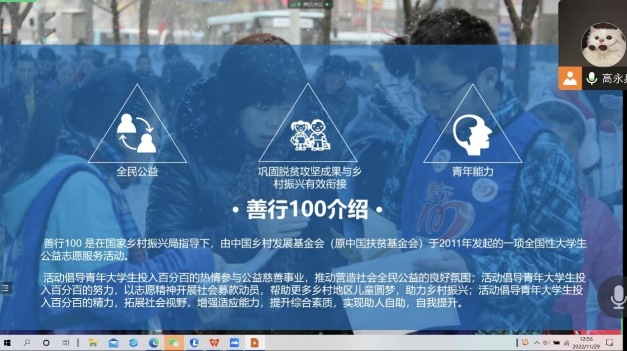 williamhill体育在线登录青志队利用线上宣讲的形式,详细地介绍了活动形式,项目目标和善款使用等方面内容,使同学们深入了解本次活动,明确了欠发达地区孩子们的需求。宣讲会吸引了很多同学踊跃报名成为志愿者,通过统一培训,志愿者们以微信朋友圈、QQ空间宣传等多种方式号召大家无私奉献爱心,积极捐款。