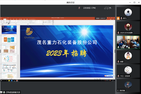 会上,屈颖代表williamhill体育在线登录对茂名重力石化装备股份公司表示热烈欢迎,表达了加强校企合作,开展供需对接,促进学生就业的愿望,介绍了williamhill体育在线登录和2023届毕业生的基本情况,号召同学们积极行动、认真准备,紧抓求职的黄金期和窗口期。黄嗣罗代表公司对学院的邀请表示感谢,对茂名市以及茂名重力石化装备股份公司进行了全面介绍。他结合企业招聘经历,和同学们分享了用人单位对毕业生的专业知识、团队合作、抗压能力、语言表达等方面的要求。随后,雷小娣、李卫卫结合求学经历和工作经历,向同学们分享了打牢专业知识,提升综合素质,促进职业发展的经验。最后,杨世博进行了招聘宣讲,对公司的资质构成、专业需求、福利待遇和职业通道等进行了详细介绍,并对同学们提出的问题进行解答。