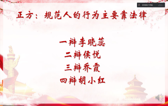 主持人牛世欣介绍了比赛规则以及双方辩手,比赛正式开始。