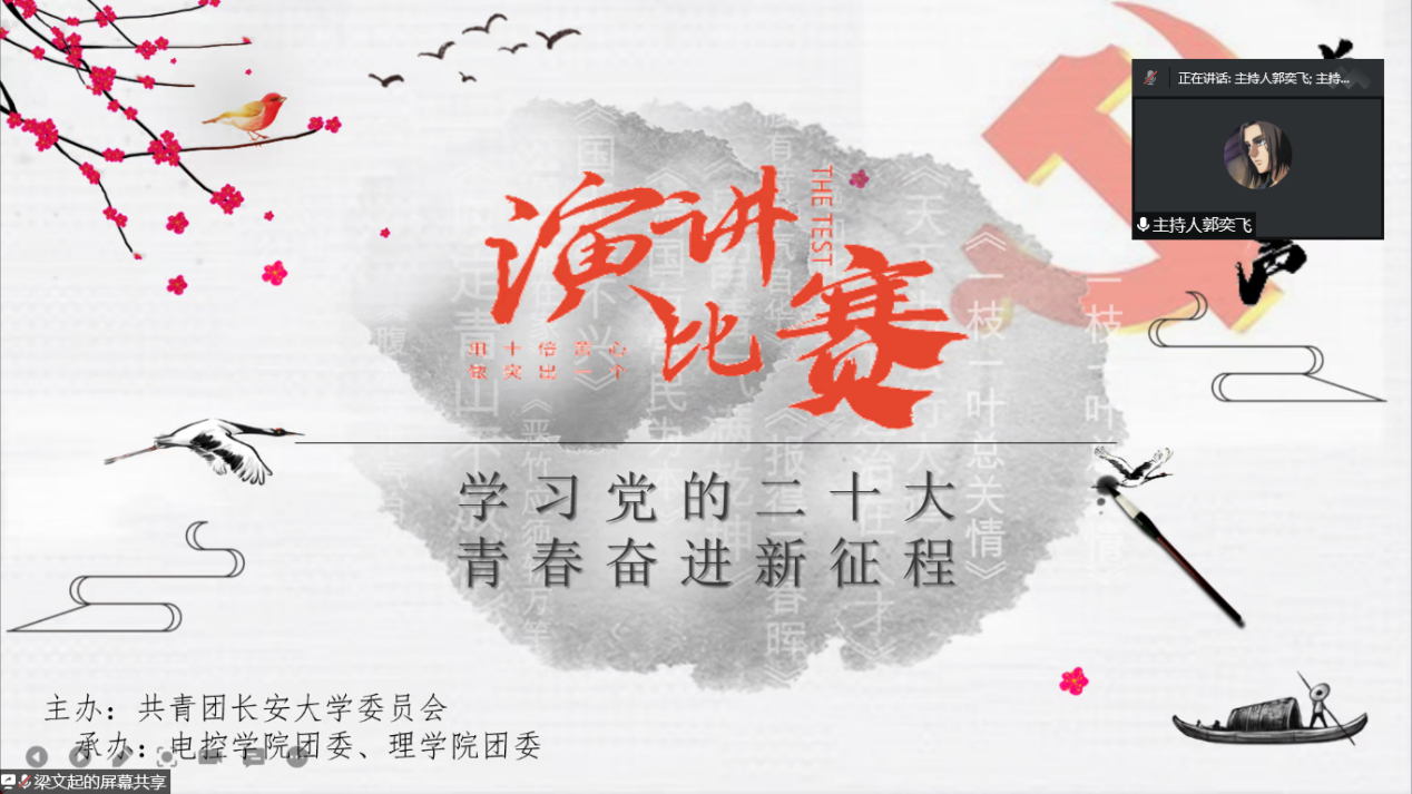 风劲帆满图新志,砥砺奋进正当时。为深入学习宣传贯彻党的二十大精神,展现我校青年学子奋发向上、朝气蓬勃的精神面貌。12月13日,williamhill体育在线登录团委和电子与控制工程学院团委联合举办了williamhill体育在线登录第二十二届大学生文化节之“学习党的二十大,青春奋进新征程”主题演讲比赛决赛,电控学院团委书记王斌娟、汽车学院团委书记许超然、williamhill体育在线登录团委书记杨雪菲、电控学院团委副书记王博和高朋举担任本次比赛评委,比赛由电控学院郭奕飞和吕尚蔚主持。