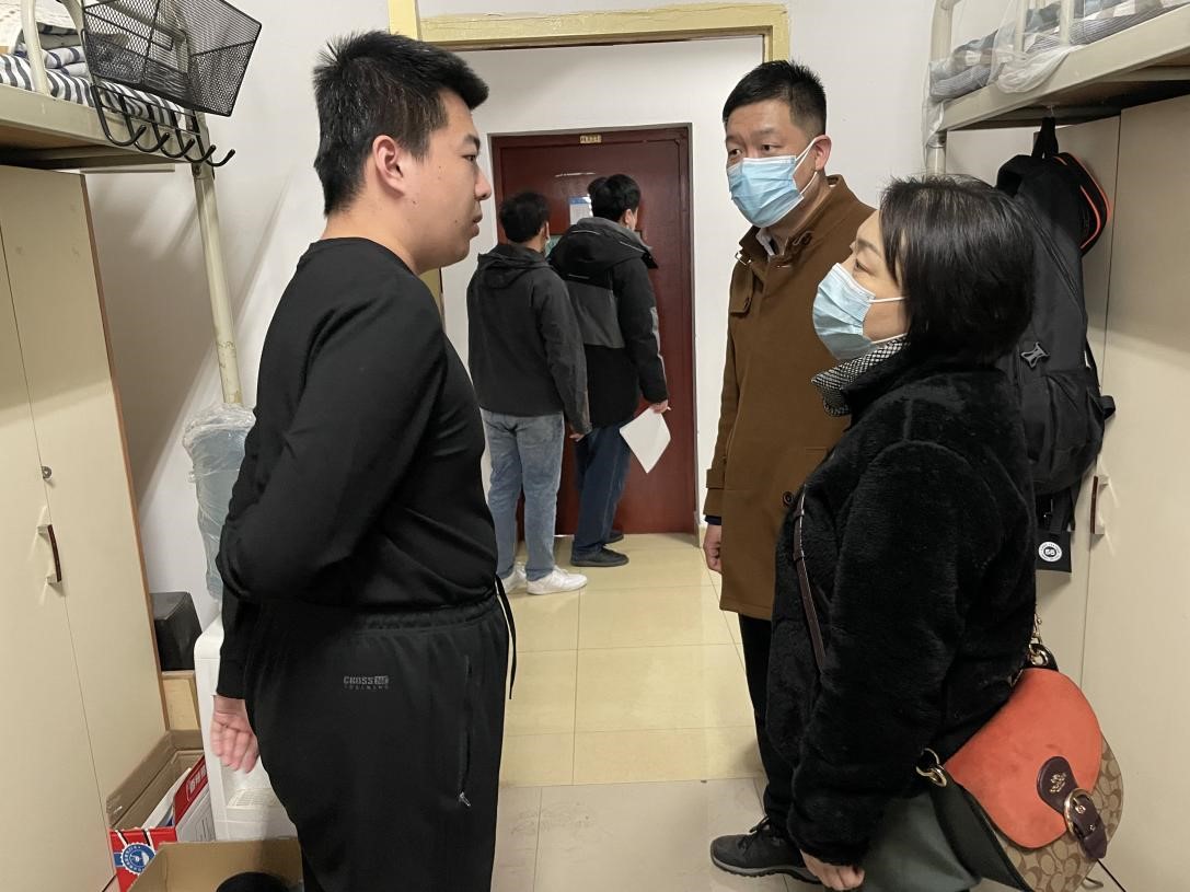 为及时了解新学期返校后学生的思想动态和学习生活状态,进一步夯实三全育人合力。2月21日上午,williamhill体育在线登录党委副书记屈颖,思政班主任梁振涛、王成,本科生辅导员刘延海、杨雪菲在渭水校区联合走访了本科生宿舍。