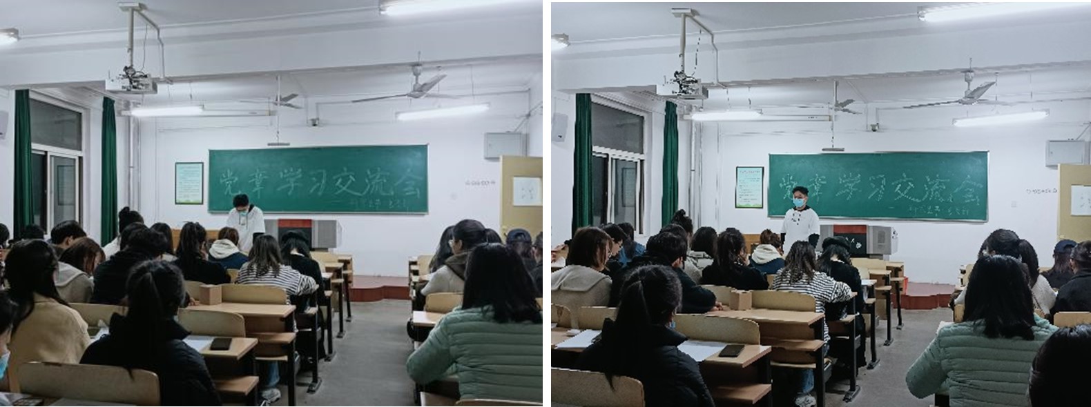 支部书记刘宗萱从党章修改要点出发,根据党的二十大对党章进行修改的内容向大家做了整体概述,并简要解读了其中的重要内容。随后,从新旧党章的具体文本出发,以比较的视角对党章修订部分及原因进行了简要阐释。