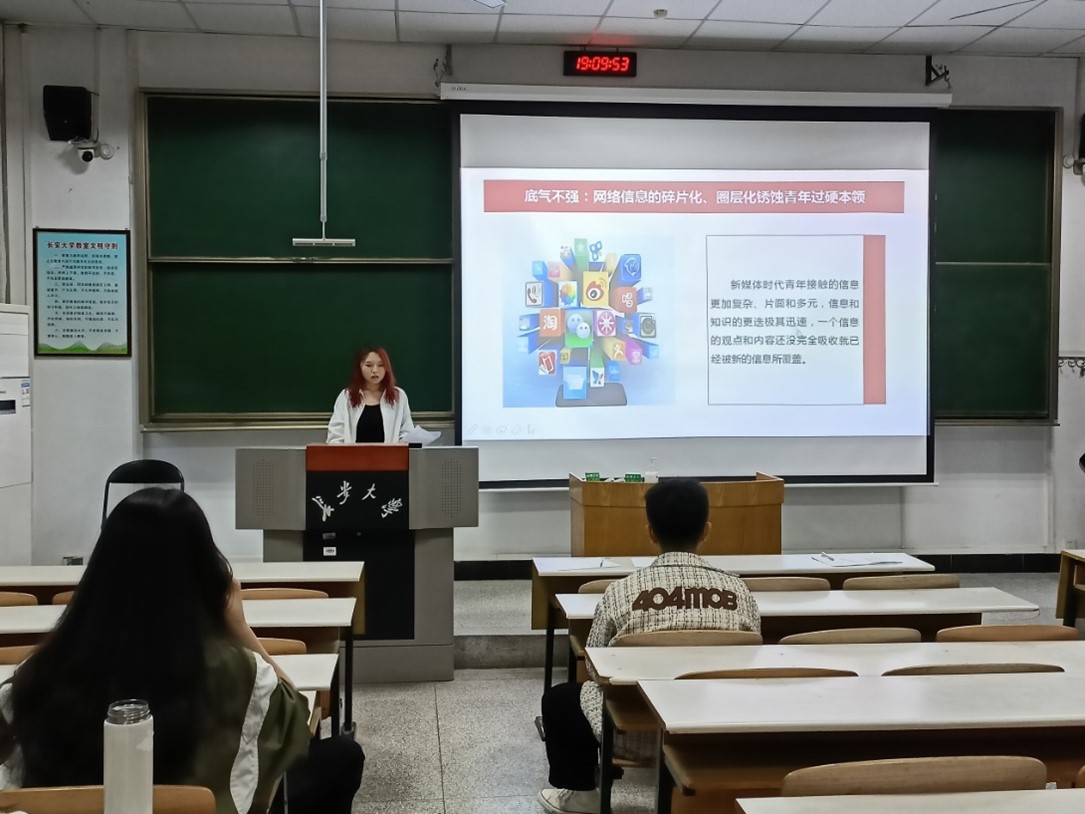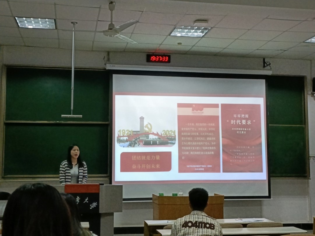 2023年4月14日晚上七点,williamhill体育在线登录研究生党支部在校本部B202教室开展“学习宣传贯彻党的二十大精神”主题党课学习活动。本次学习活动由研究生第一党支部书记刘宗萱主持,并邀请了williamhill体育在线登录星火宣讲团成员卫依奕、南潇静、高钿和李泽琼作宣讲报告,williamhill体育在线登录研究生党支部全体党员、发展对象、入党积极分子参加。