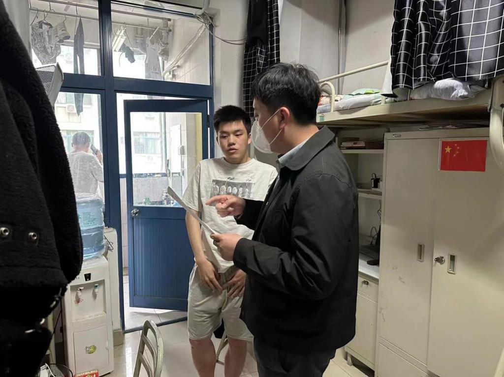 辅导员刘延海和杨雪菲重点检查了宿舍的卫生环境、安全隐患和清洁通风等情况,叮嘱同学们离开宿舍前注意断水断电,做到宿舍安全不留死角。对于劳动节小长假没有回家的同学们,老师们也围绕假期生活、学习等问题对大家进行了关切的问候,嘱咐宿舍成员之间友爱互助,营造良好宿舍氛围。