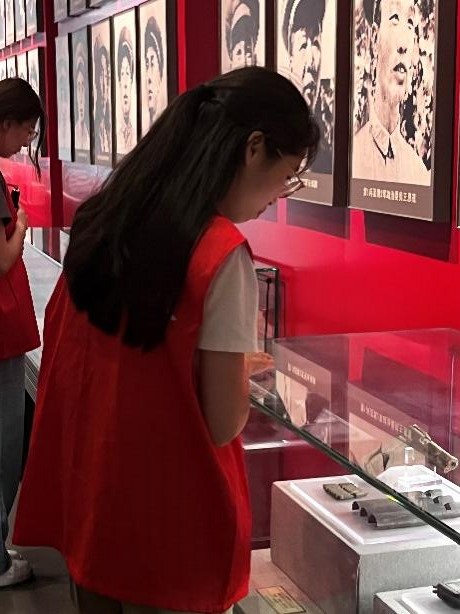 在纪念馆中,实践队员被陈列的物件所吸引,展现了大家对红色文化的热爱,这些陈列的文物,是历史的产物,其中蕴含了革命前辈无私奉献的品质,实践队员感动的不只是眼前,更是记忆深处的情感之旅。