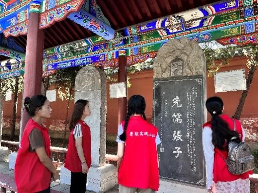 实践队参观了整个祠堂,不管是展厅中的文物还是伫立的石碑,这些深厚的文化底蕴都深深的吸引着我们,当参观张载文化碑廊时,实践队员站立在石碑前,对张载先生的敬仰之情不禁油然而生,深深折服于张载心系苍生、为民请命的政治抱负和宏伟理念。张载年少时曾在此读书学习,晚年归隐在此设教,张载去世后,后人为了纪念他,便发展为现在的张载祠。张载曾言“为天地立心,为生民立命,为往圣继绝学,为万世开太平”,他的四句名言永垂不朽,这正是张载的政治抱负和宏伟理念。