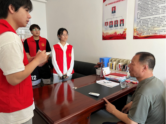 新村党支部书记董乃会热情地向实践队讲述了新村搬迁、安置、发展各项农业产业的艰辛历程。向队员们详细介绍了新村的发展现状以及下一步发展规划。