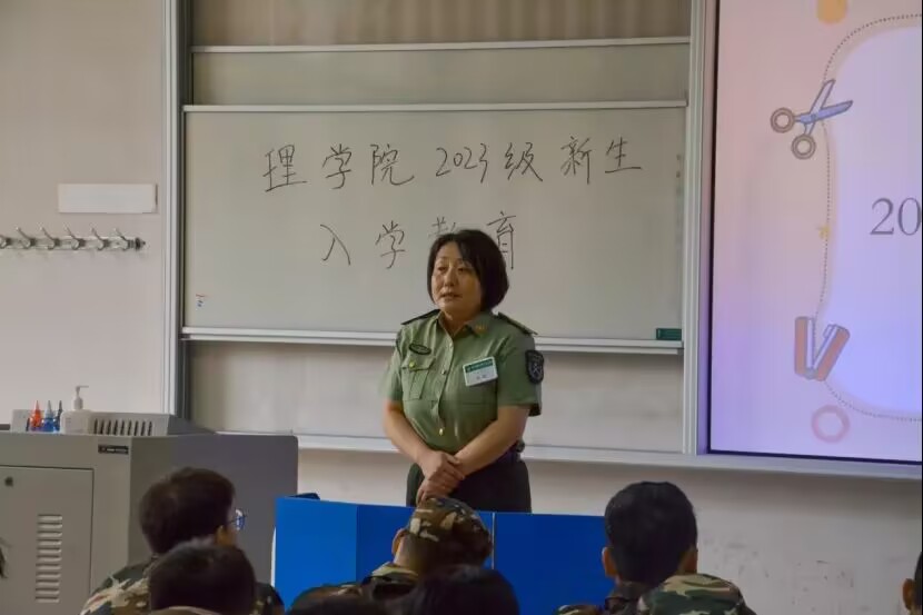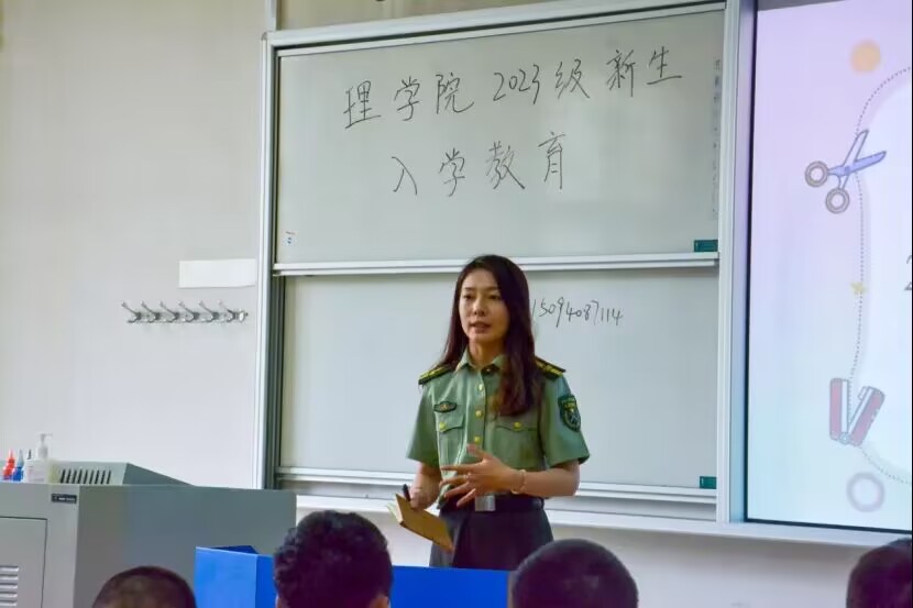 树立良好形象,从身边小事做起。姜雨彤老师补充了军训和日常生活管理的相关内容。首先,姜老师强调礼貌问题。其次,希望同学们培养独立自主能力,学会表达沟通,在军训期间要严于律己,听从指挥。最后,强调宿舍内务卫生,为新生宿舍评比做准备。