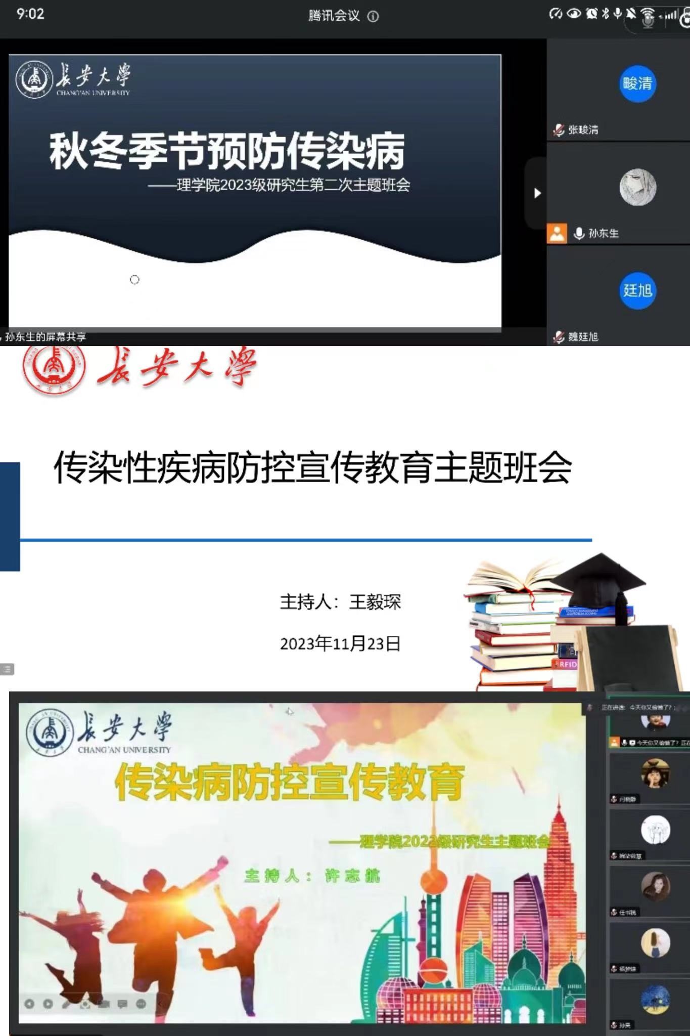 随着秋冬季节的到来,天气逐渐转凉,各种传染病也进入了高发期。为了提高学生的防疫意识,加强校园健康管理,williamhill体育在线登录研究生各班分别于11月22、23日开展了以“秋冬季节预防传染病”为主题的班会。