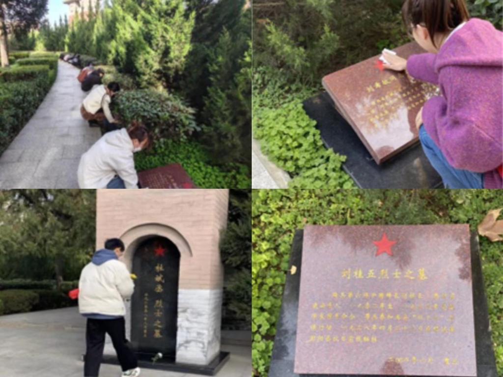 西安烈士陵园烈士墓区为半圆形,前后四排,分别安葬着242位烈士的遗骨。墓区中央建有三个圆形墓冢,中间为王德安等“西安九烈士墓”;西边为杜斌丞烈士墓;东边为曹力如烈士墓,墓区劲松挺立,象征着烈士的精神万古长青。烈士陵园内庄严肃穆,在党支部书记许志航的带领下,党员同志们肃立祭奠,深刻感受到了革命先烈们的崇高精神。接着,大家参观了烈士墓区,一个个墓碑代表着一个个英雄,他们用鲜血和生命谱写了辉煌的历史,支部成员自觉停下脚步,默哀良久,向着墓碑行礼。随后,大家为烈士墓碑拂尘,并敬献花束,表达对革命先烈的缅怀和敬意。