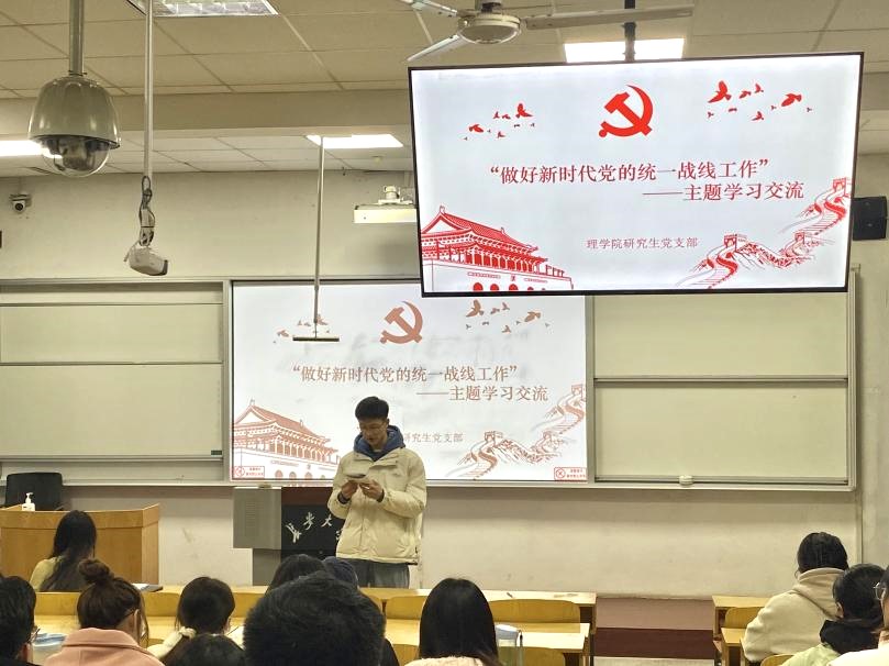 为深入学习贯彻习近平总书记关于做好新时代党的统一战线工作的重要思想,努力开创学校统一战线工作新篇章。2023年12月8日晚,williamhill体育在线登录研究生党支部在校本部B102教室开展“做好新时代党的统一战线”主题党课学习活动。本次学习活动由研究生第一党支部书记许志航主持,并邀请了williamhill体育在线登录星火宣讲团成员马克思主义学院2021级本科生闵梦婷和水利与环境学院2021级本科生谢鑫杰作宣讲报告,williamhill体育在线登录研究生党支部全体党员、发展对象、入党积极分子参加。