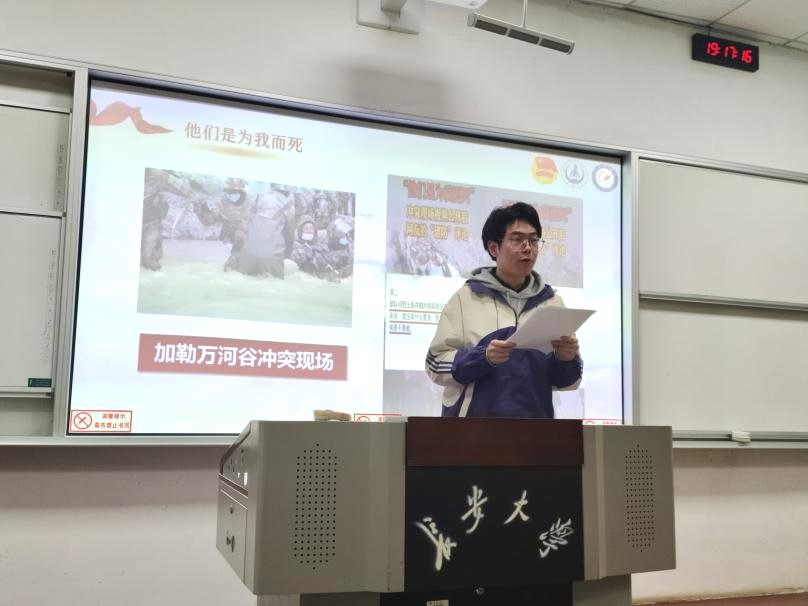 随后,两位宣讲团的成员依次作了主题宣讲报告。闵梦婷同志以《双向奔赴,解锁百年大党的“人民密码”》为题与同志们进行学习交流。闵梦婷同志着眼于“双向奔赴”:“我将无我,不负人民”,是总书记对人民不变的初心,更是坚定的行动;同时,千千万万个普通人的拼搏奋斗,共同铸就了我们国家豪情万丈的砥砺前行。“祖国与人民同心,人民与祖国同行”是闵梦婷同志的讲解带给我们的启发,只有承担起努力奋斗的历史使命,才能不负光荣与梦想,汇聚起实现中华民族伟大复兴的磅礴力量。谢鑫杰同志以《生命的最后一刻,献给祖国和人民》为题与同志们进行学习交流。他首先以“在生命的最后一刻,你会选择做什么”这一问题为引,以爆破力学与核试验工程领域著名专家林俊德、戍边烈士陈祥榕、以及抗美援朝战争中牺牲的烈士们为例,向我们展示了英雄们的爱国之心。最后指出,我们要把握当下,视当下每一刻为生命的最后一刻,肩负历史使命,坚定前进信心,立大志、明大德、成大才、担大任,把爱国之心化为报国之行,在实现中华民族复兴的伟大征程中,用担当奉献谱写新时代的青春华章。