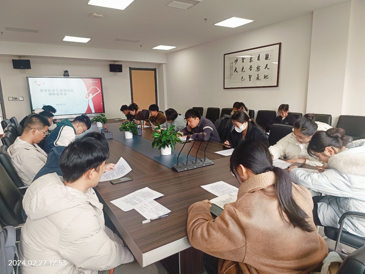会前,辅导员、学生干部围绕思想动态调研提纲,通过问卷调查、谈心谈话等方式,全面了解了学生思想动态并撰写调研报告。会上,学生代表逐一发言,阐述了本班学生对于社会热点问题的态度观念和价值取向,表达了新学期学生对于校内学习生活的美好期待和问题建议,回顾了寒假社会实践的经历,排查了学生中存在的学业困难、因灾变故等安全风险。屈颖对学生提出的问题进行了回应,表示全体学工干部和学生骨干要落实岗位职责,加强关心关爱,持续做好学业困难、家庭经济困难、心理危机等学生的帮扶工作;本学期将继续举办就业宣讲会、生涯规划指导、专业分流等指导会,多措并举促进学生发展成长;及时反馈并解决宿舍矛盾、公共设施等方面存在的校园安全隐患,号召全体学生积极关注时事热点,始终厚植家国情怀,牢固树立正确的价值取向。最后,与会人员就相关问题进行了讨论。