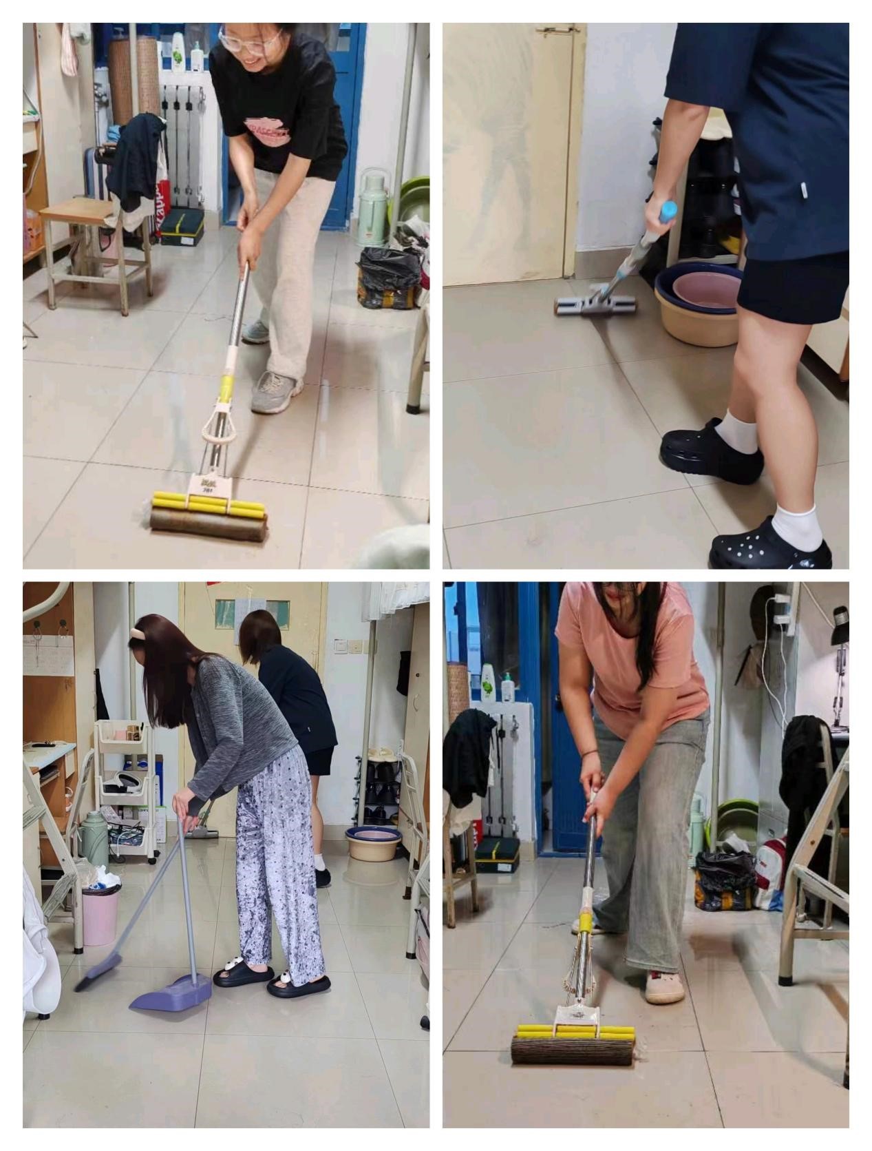 同学们认真负责地进行打扫,分工明确、相互协作,同时也不断思考,提出了一系列高效的清扫方法,为改善宿舍环境建言献策。