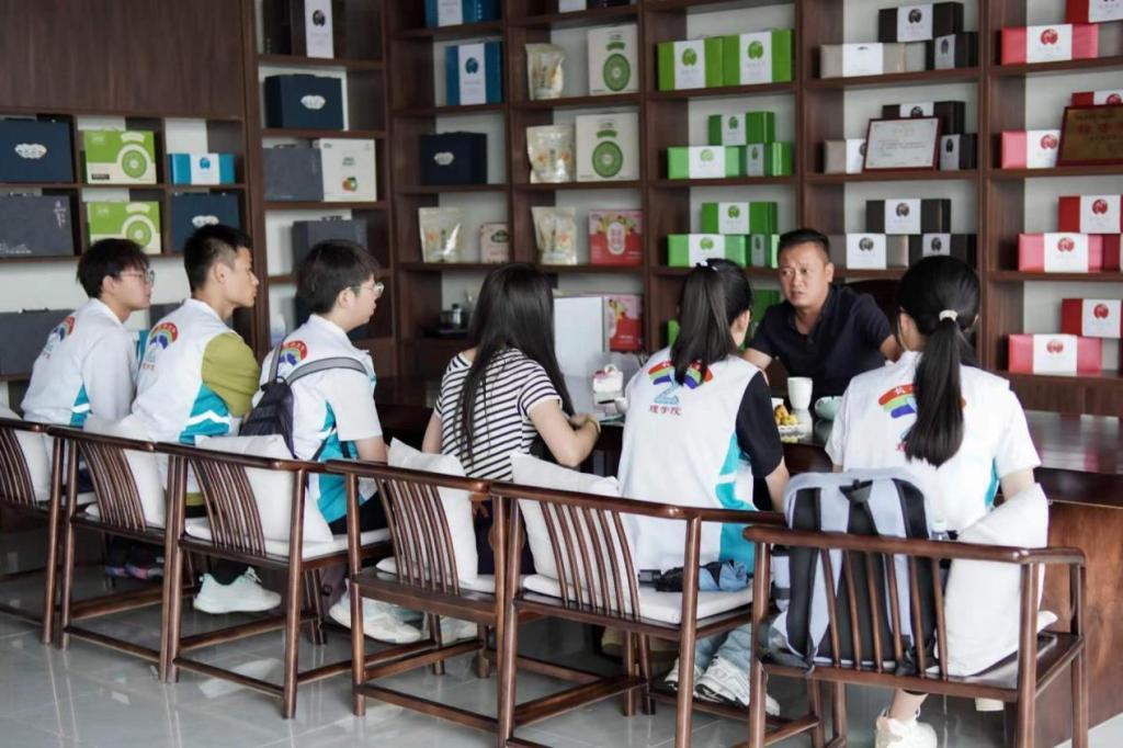 实践队聚焦农业领域,重点走访了陕西汀味融绿色农产品开发有限公司、商南县茶叶联营公司、陕西祥瑞源琪农业科技有限公司及七碗茶茶叶基地等当地特色农产品企业。通过参观生产车间、体验助农直播、与负责人座谈等形式,了解企业在推动农业农村现代化、促进农民增收、助力乡村振兴方面等的具体举措和显著成效。商南县的众多农业企业,以绿色农产品为依托,不断进行产业升级,延长产业链。队员们认识到,农业企业的发展与国家的政策息息相关,产业化的企业更是乡村产业发展的骨干力量,让村民们实现“家门口”就业的同时持续有效提升农村土地资源利用效率,也改善了农村的基础设施建设。青年一代在走入基层感受乡村发展的同时更要关注到农业企业所面临的风险和挑战,以自身所知所学助力乡村振兴。
