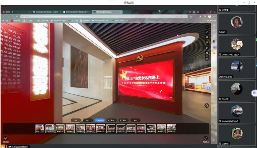 支部党员们在线上参观了“序厅”,“不忘初心、砥砺前行”,“拒腐惩贪、警钟长鸣”,“以史为鉴、固本培元”以及“尾厅”五个单元。通过丰富的文字资料、高清图片以及互动式的多媒体内容,对中国共产党在不同历史时期反腐倡廉工作的成果有了更全面的认识。